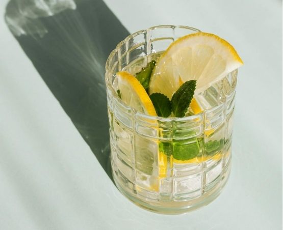 2. Voeg de jenever en het verse limoensap toe aan de mok.