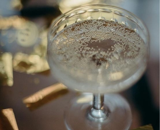 5. Vul het glas aan met prosecco of champagne.