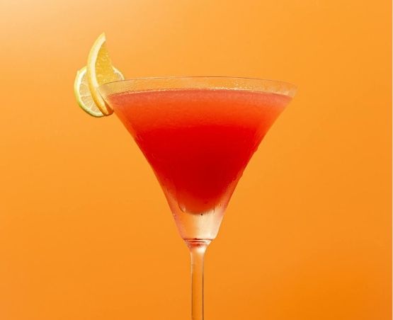 4. Garneer de cocktail met een schijfje sinaasappel en eventueel enkele groene olijven.