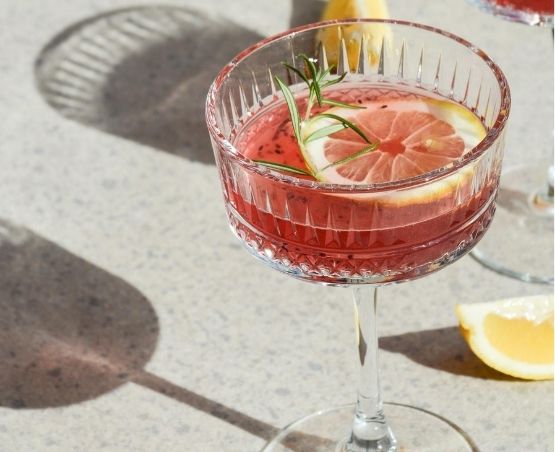 5. Garneer met een schijfje limoen of grapefruit aan de rand van het glas.