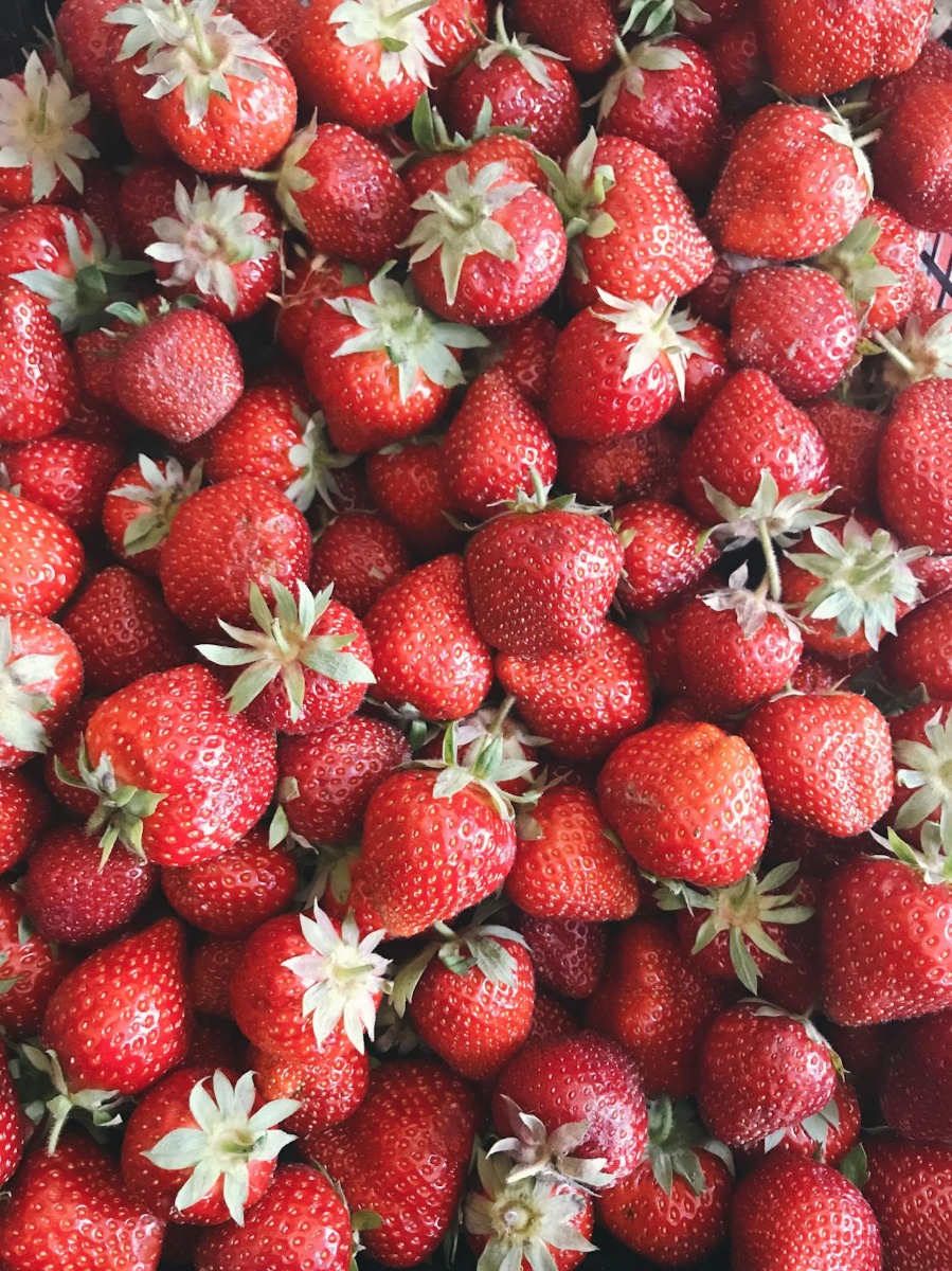 1. Neem een stevig glas en doe de aardbeien, muntblaadjes en suiker erin.
